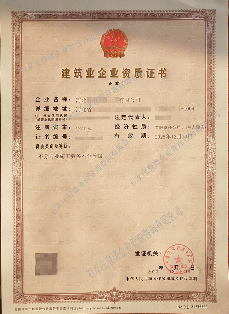 不分等級勞務資質(zhì)辦理成功案例電子版