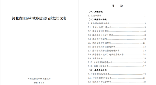為進一步規范全省住房和城鄉建設領域行政處罰行為,保護行政相對人的合法權益,近日,省住房和城鄉建設廳印發《河北省住房和城鄉建設行政處罰文書》,要求各地住房城鄉建設、城市管理執法部門結合行政處罰工作實際,參照執行使用。《河北省住房和城鄉建設行政處罰文書》將自2021年7月15日起執行,原有的《河北省建設行政處罰文書》同時廢止。