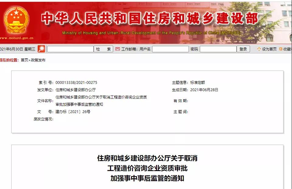 6月29日住建部發(fā)布《關(guān)于取消工程造價(jià)咨詢企業(yè)資質(zhì)審批加強(qiáng)事中事后監(jiān)管的通知》:自2021年7月1日起,住房和城鄉(xiāng)建設(shè)主管部門停止工程造價(jià)咨詢企業(yè)資質(zhì)審批,工程造價(jià)咨詢企業(yè)按照其營(yíng)業(yè)執(zhí)照經(jīng)營(yíng)范圍開展業(yè)務(wù),行政機(jī)關(guān)、企事業(yè)單位、行業(yè)組織不得要求企業(yè)提供工程造價(jià)咨詢企業(yè)資質(zhì)證明。
