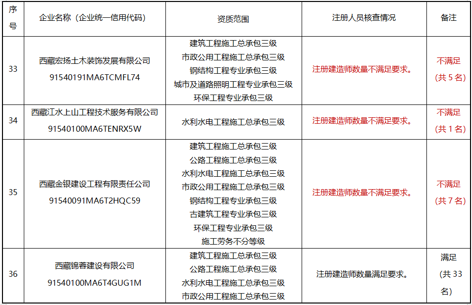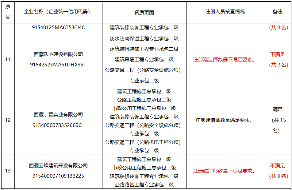 請相關企業高度重視,盡快進行整改,也可即日起通過“西藏自治區建筑市場監管與誠信一體化工作平臺”自行申請注銷相關資質;各地(市)住建主管部門要加大督導力度,加強政策指導,確保按期整改到位。