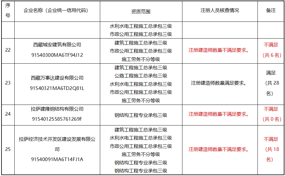 整改期滿(截止9月25日)仍未達到建設工程企業資質標準要求的,我廳將撤回其相應的資質證書并在西藏自治區住房和城鄉建設廳官網站上予以公告。